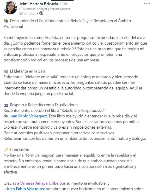 Jeimi Herrera ha confiado en mis servicios de mentoring varias veces, agradezco infinitamente esa confianza.